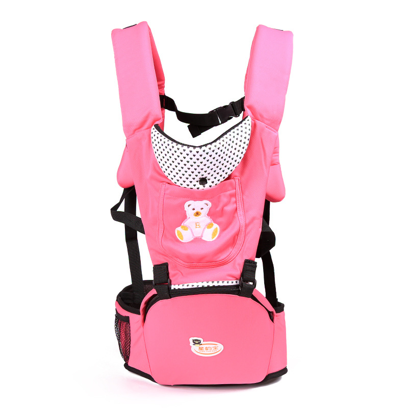 可愛いくまの刺繍がポイントの抱っこ紐です。 腰部分に幅広のベルトを搭載し、赤ちゃんの体重を分散して長時間の使用でも疲れにくい設計のベビーキャリアです。 肩紐にはたっぷりのクッションを施し、保護者の負担を軽減します。 通気性の良いメッシュ素材を使用し、赤ちゃんも快適に過ごせます。 前面には小物が入る便利なポケット付きで、お出かけに最適な抱っこ紐です。