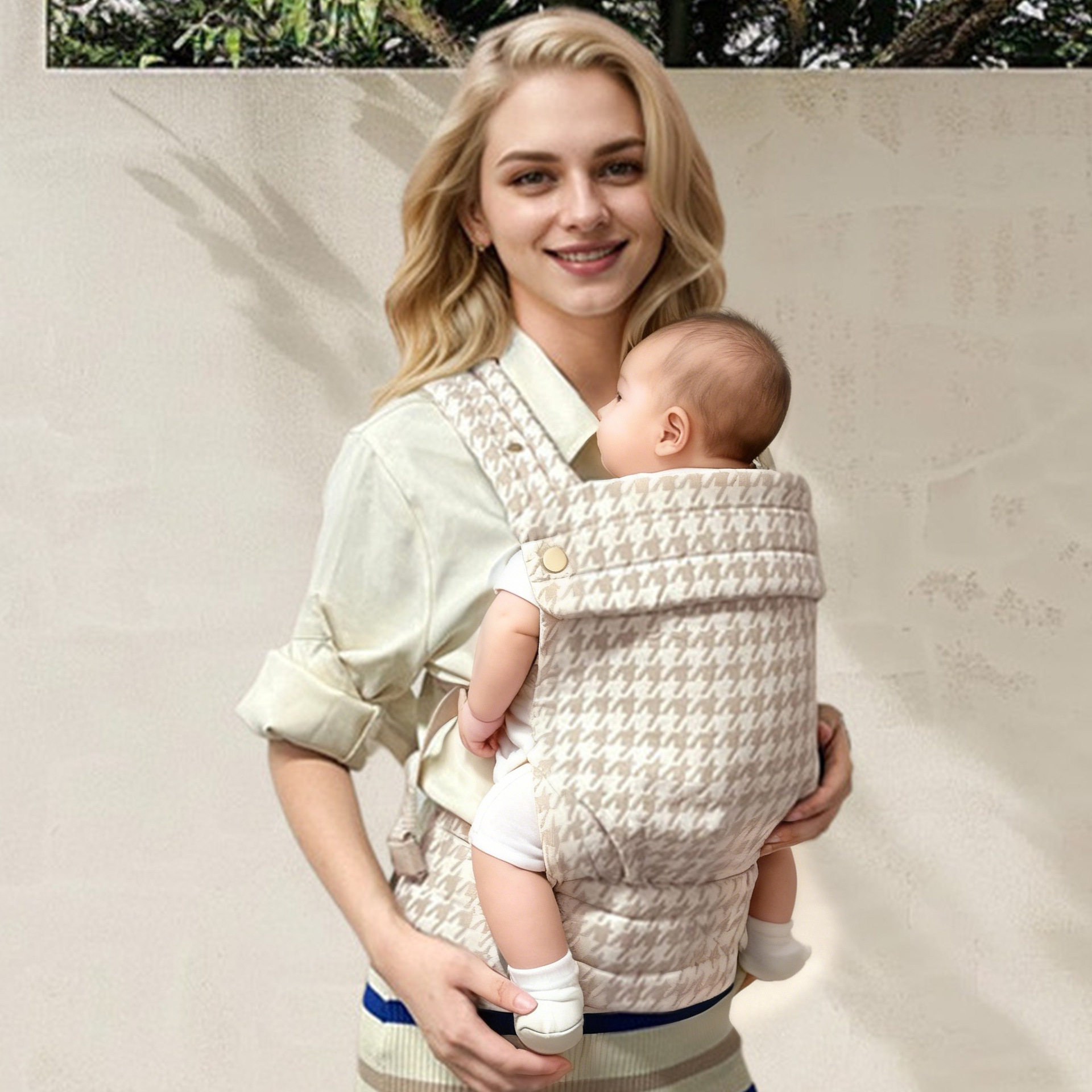 上品な千鳥格子柄が特徴的なこの抱っこ紐は、おしゃれなデザインと機能性を両立したベビーキャリアです。